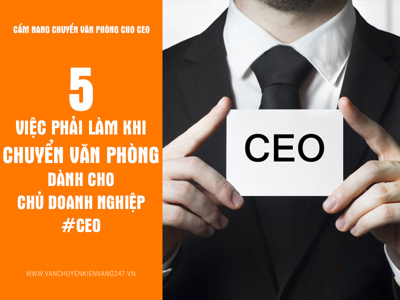 Với cương vị là một người chủ doanh nghiệp(CEO) bạn cần phải làm gì khi chuyển văn phòng. Trong bài viết này Kiến Vàng xin đưa ra cho bạn tất tần tật những bạn cần khi chuyển văn phòng đảm bảo không ảnh hưởng tới hoạt động của công ty.